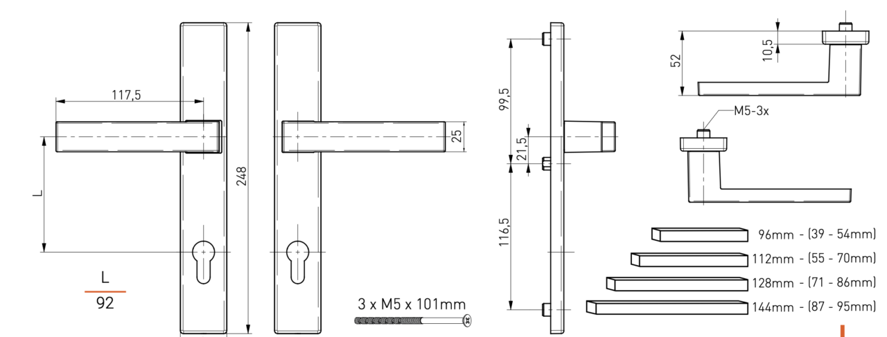 Szögletes bejárati ajtó kilincs